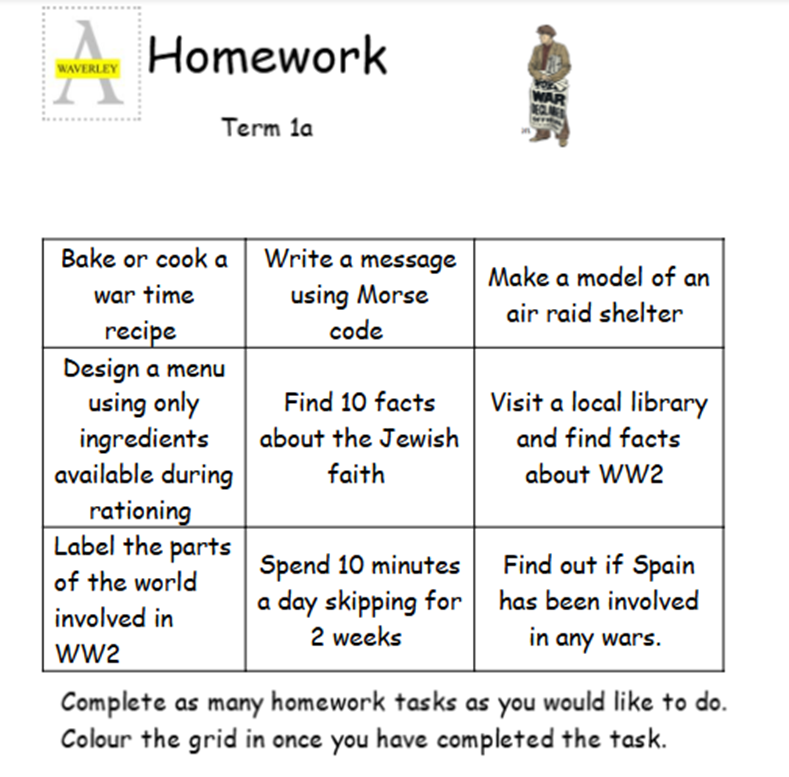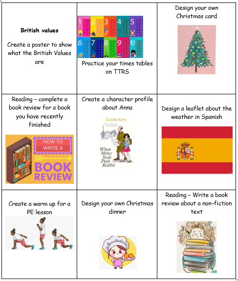 Each half term we will send out a home learning bingo grid with tasks for you to complete at home. Here are this half term’s challenges for you to try.