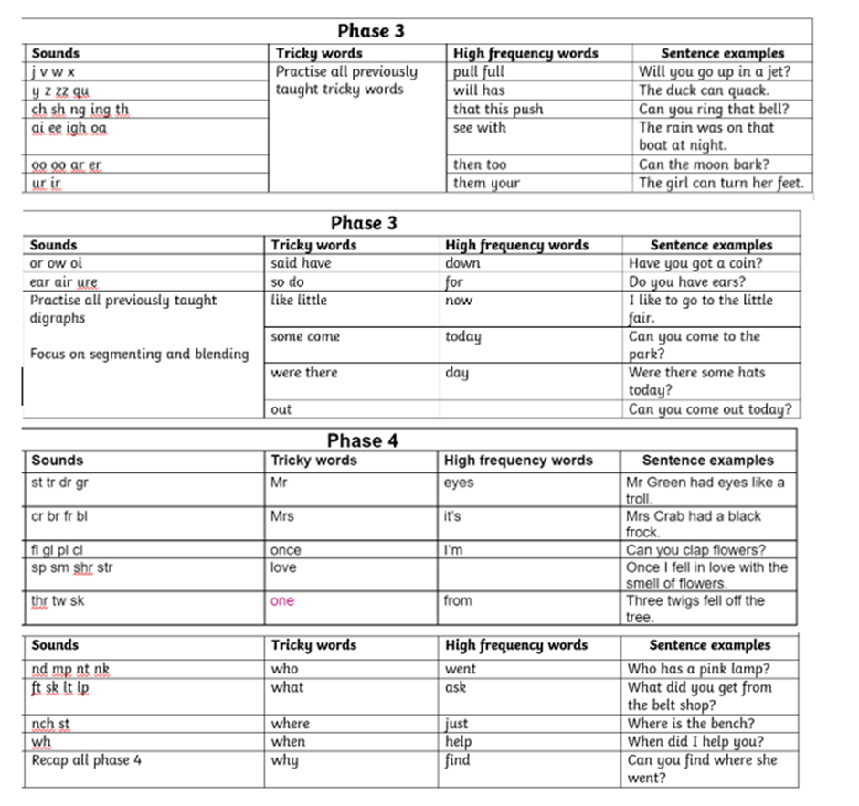 Some children that have previously learnt some phase 3 sounds, tricky words and high-frequency words, will continue to use these sounds to blend and read both real and alien words. We will also begin to start learning phase 4 blends, tricky words and high-frequency words. We will be learning to use these blends to read both real and alien words.