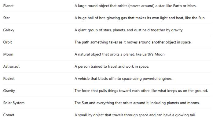 We will be looking at the planets in our solar system, theories and beliefs about space and how these ideas have changed over time, how spherical bodies orbit in space and the movement of the moon. To finish of four topic, we will be researching the Space Race.
