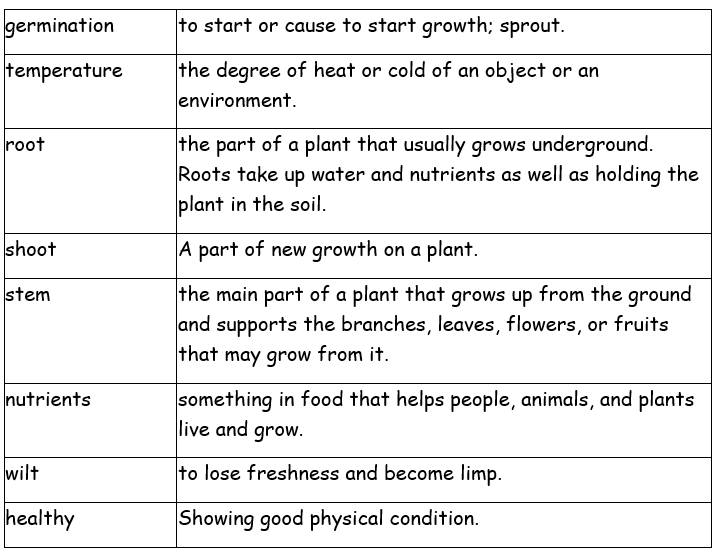 Key vocabulary pupils will learn through this topic can be found in the table below.