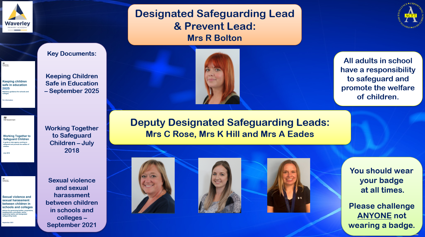 Our Prevent Lead is Rachel Bolton. Please contact her if you have any questions; rachel.bolton@waverleyjunioracademy.org. Our Prevent Risk Assessment can be found on the policy page.